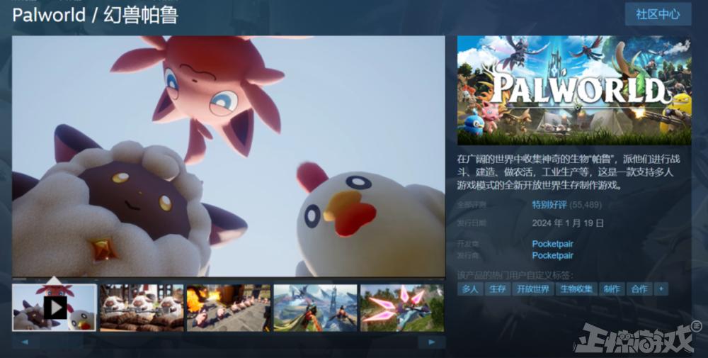 由日本獨立團隊Pocketpair開發的沙盒生存遊戲《幻獸帕魯》,在2024年1月19日在 Steam 平臺上發售搶先試玩版。玩法上該遊戲結合了寶可夢式的怪物收集、建造、戰鬥等多種元素,讓玩家在奇幻生物世界中探索、生存、冒險。