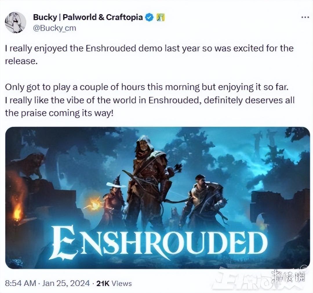 作爲《幻獸帕魯》的直接競品,《幻獸帕魯》的社區經理Bucky在推特發文稱讚《霧鎖王國》,表示對《霧鎖王國》的發佈很感興奮,非常喜歡《霧鎖王國》的世界氛圍,絕對值得所有的讚揚。