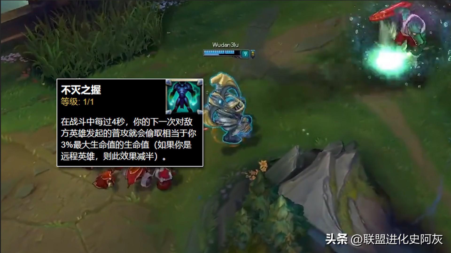 不過真正被世人所銘記是在一年之後,不滅之握的誕生讓坦克的對線能力更上一層樓,上單泰坦連喫幾波紅利,直接原地起飛,與波比、大樹組成了三幻神,對線指環王+小熔渣,沒人打得過,團戰日炎冰拳加綠甲,沒人打得死,如果你想玩的更噁心一點,還可以出號令之旗+傳送門,混分巨獸算個der?請叫我深海“太躺”!當年AJ就是靠一手泰坦繞後,助IM創造了奇蹟(三級跳進S賽)。