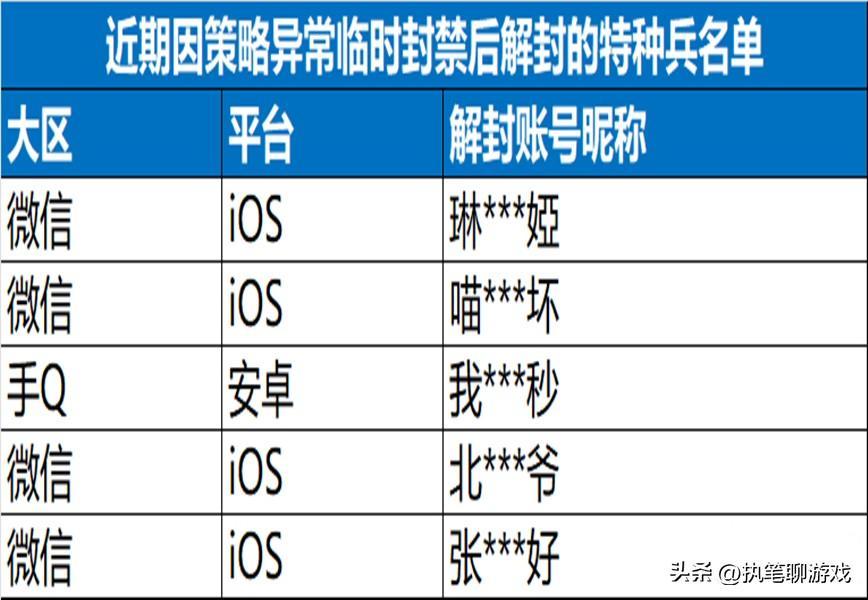 此類“封神榜”經常能看到,不過還有一種名叫“因策略一場臨時封禁後解封”的名單。