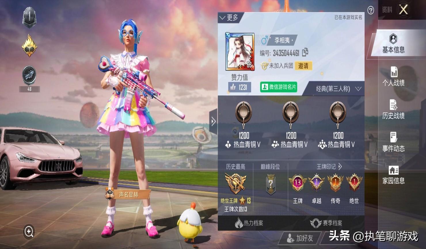 從對方的遊戲背景不難看出,雖然談不上是高氪的土豪,但起碼擁有多個升級槍以及套裝,背後還停着粉色的瑪莎,在歷史賽季中還拿下了13次王牌,還曾拿下了絕世印記,這也算是大快人心之舉了。
