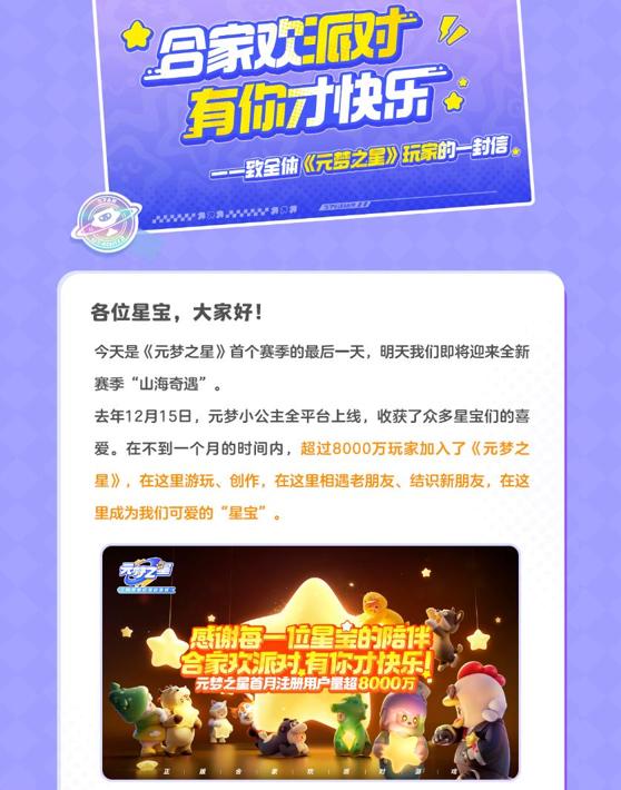 說《元夢之星》能在春節大展拳腳是有道理的。官方的公開信中透露了這款遊戲的研發初衷:“爲每位星寶創造一個小小元宇宙,爲每個有趣的靈魂提供綻放的舞臺。”