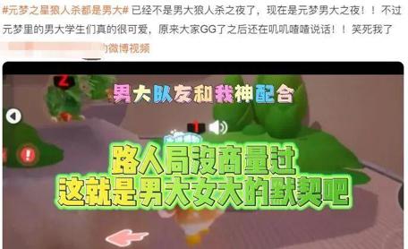 起因是幾個元夢玩家分享了在“誰是狼人”模式裏偶遇男大學生玩家,通過默契配合完成極限操作的視頻。