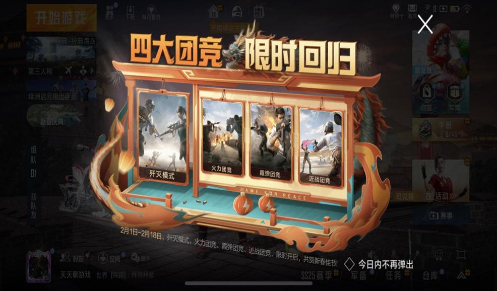 其實除了“四大模式”的迴歸之外,創意工坊接下來也會有全新的動作。其中的“極寒模式”將在2.24正式下架;而“超體對抗”在春節期間,將會出現限時的“龍年大吉”等插件,同時還會在每週5到每週日全天開啓空投雨,其他時間則是17點到22點限時開啓。