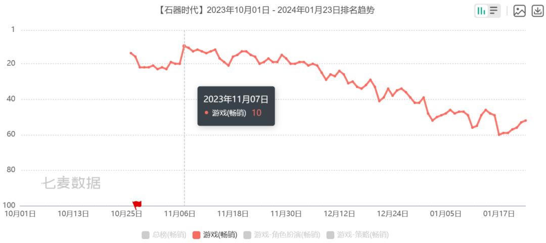 而就近期這些產品的數據來看,你能發現,愷英網絡在IP產品打法方面已經愈發熟練——去年6月的《龍神八部之西行紀》登頂過免費榜;去年10月《石器時代:覺醒》也曾登頂免費榜,且進入過暢銷前10位;去年11月的《納薩力克之王》最高至免費榜第2位、暢銷榜第19位……
