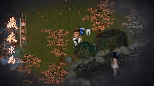仙靈島的藏衣求藥情節,李逍遙拿樹枝挑衣服,