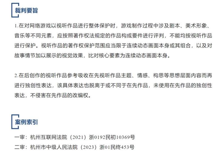 1月18日,《杭州互聯網法院網絡知識產權十大典型案例》發佈。其中《藍月》電影和《熱血傳奇》遊戲的確認不侵害著作權糾紛案入選。