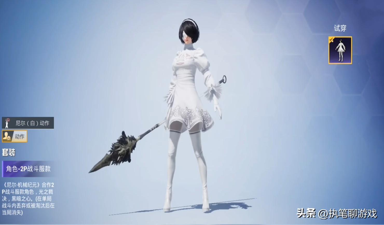 最後我們以遊戲內的表現來結尾,個人覺得還算相當不錯,起碼在《和平精英》最近一系列的聯動角色裏,尼爾機械紀元算得上是相當不錯了。那麼問題來了,不知道大家是更喜歡黑色的角色呢?還是白色的角色呢?歡迎與天哥一起交流討論。