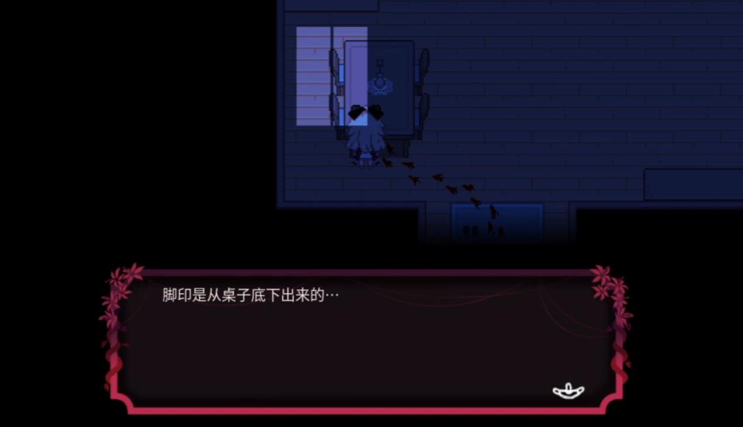 餐廳裏突然出現了怪異的腳印,而這些腳印則是從桌下延伸而出。