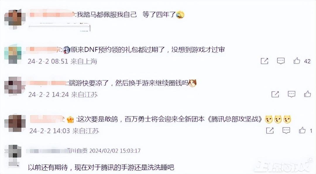 這次《DNF》手遊的忽然過審,有網友哭笑不得的感慨,我特喵的都佩服我自己,竟然等了4年。也有網友嘲諷說,原來《DNF》手遊預約領的禮包都過期了,沒想到遊戲才過審。還有網友吐槽,端遊快要涼了,現在換手游來繼續圈錢嗎?