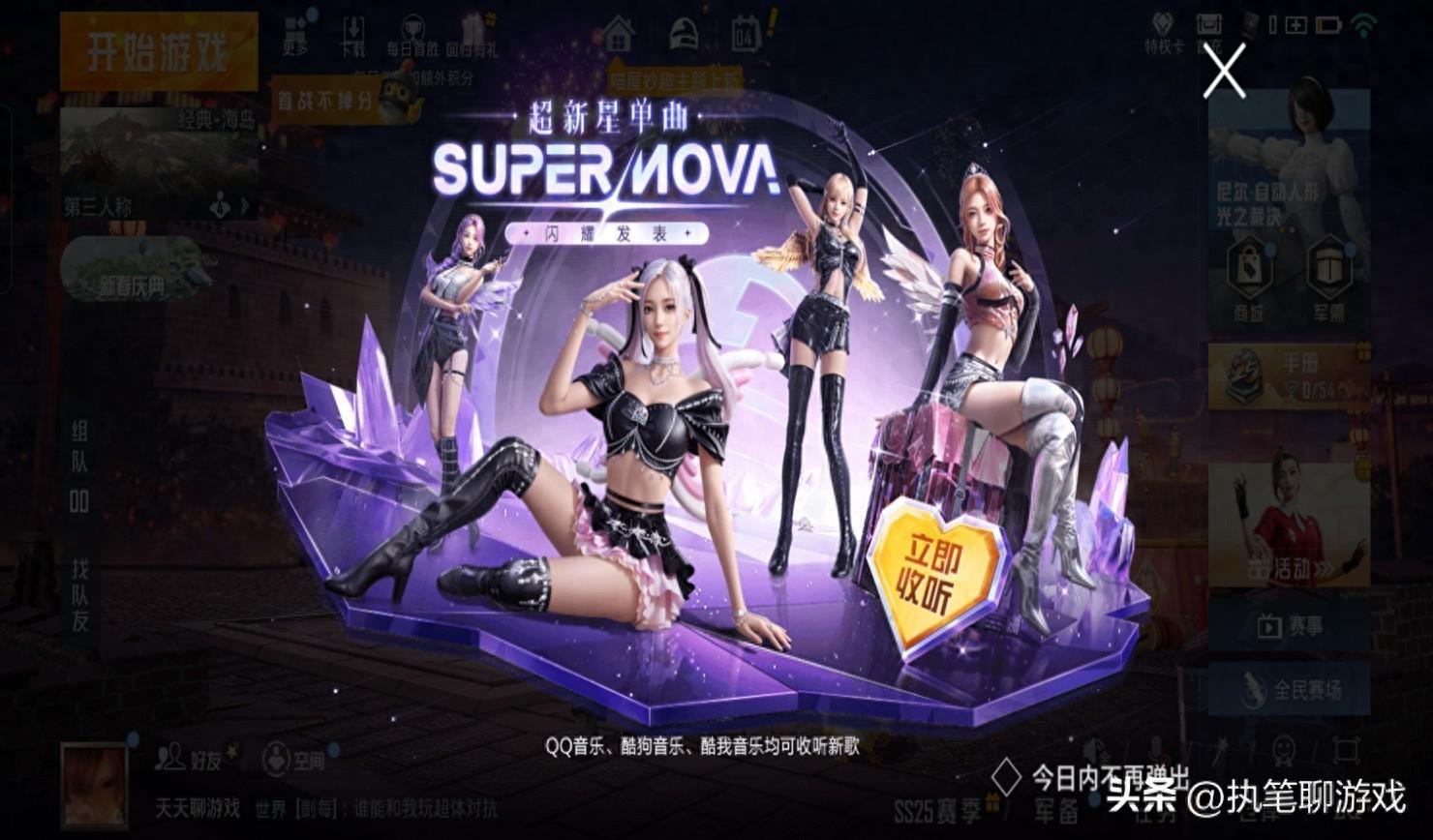 目前的《和平精英》遊戲內已經正式出現,新單曲“SuperNova”,翻譯過來後就是“超新星”。