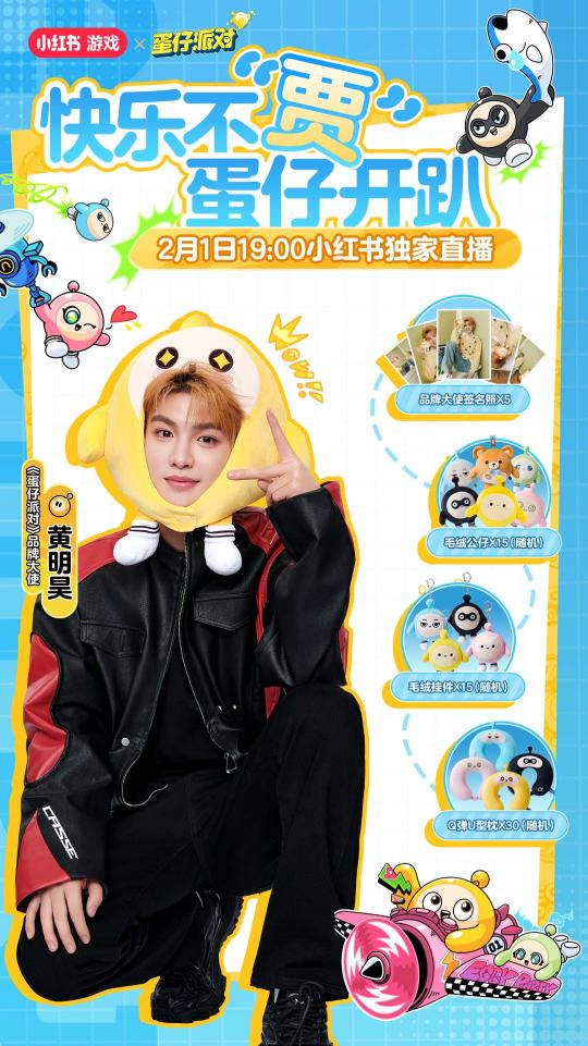 而在小紅書上,Z世代內娛「梗王」黃明昊也在1月21日官宣成爲《蛋仔派對》品牌大使。