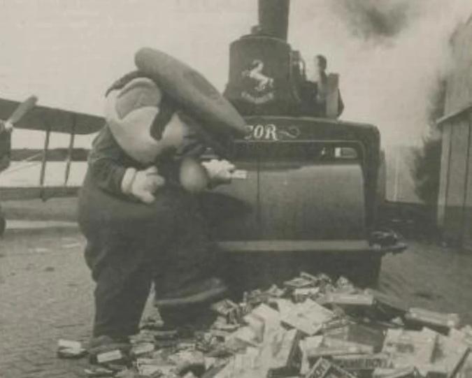 1994年任天堂使用壓路機銷燬盜版遊戲的照片