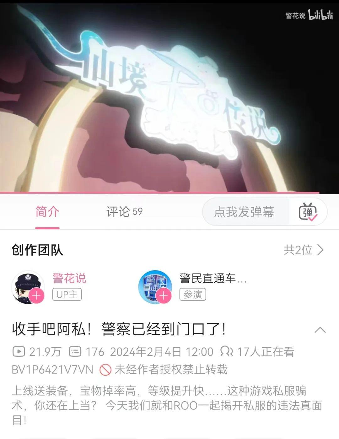 後續他們又發佈了與上海青浦警方及警花說的聯動視頻,只爲用最具娛樂性的方式,向對盜版生態不瞭解的羣衆科普私服的危害,增強玩家警惕心。