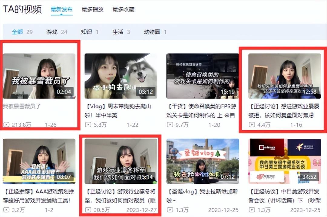被裁員的人裏最火的還要數這位“哭”上熱搜的小姐姐,回看這位UP的視頻,她從23年10月份開始,在B站分享自己在暴雪的設計師生活。一路從參觀公司、到遊戲行業、再到12月聊到行業凜冬,1月中旬在賬號內教從業者面對裁員和麪試。
