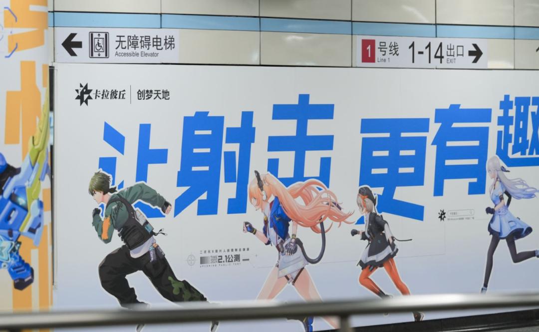 《卡拉彼丘》的美術品質和硬核射擊玩法,已經預示着其研發成本並不會低,但製作組並未着急推出新角色、大量禮包回收成本,反而在遊戲正式公測前,將《卡拉彼丘》搬到了北上廣深成五地的地鐵站裏,並先後公佈了遊戲未來的更新節奏、聯動活動、電競賽事等規劃。