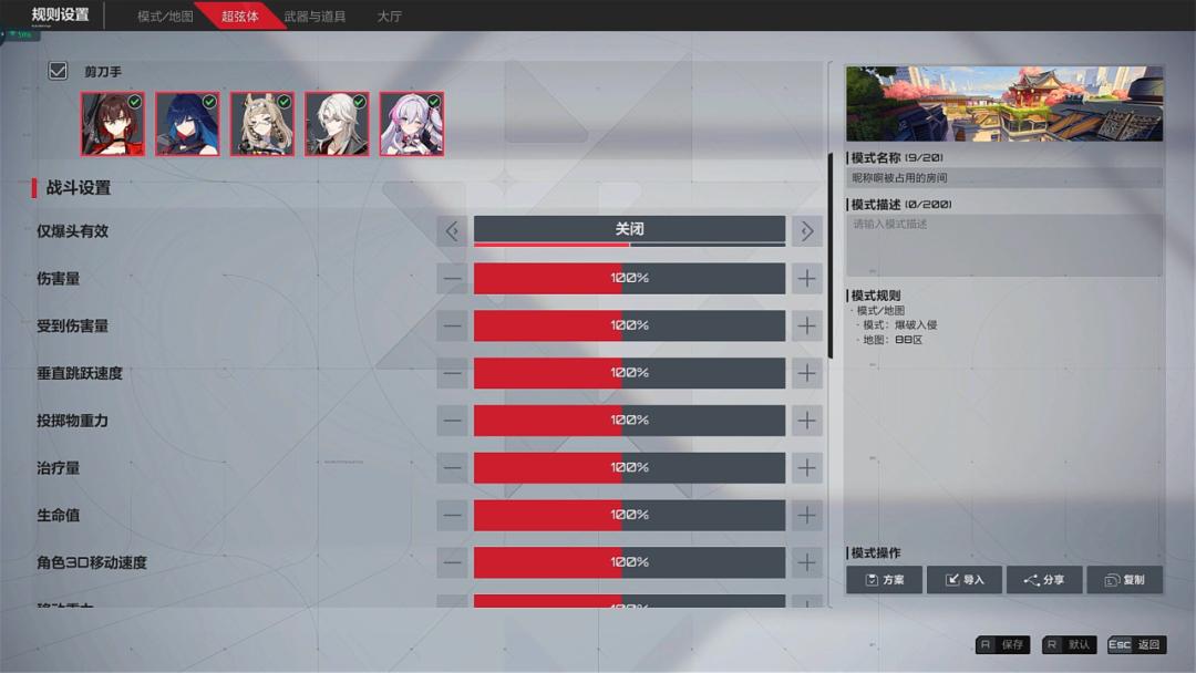 再比如遊戲還有自由度頗高的自定義房間。玩家可以在此調節對局、角色、槍械等方面的多項數值,進而能像派對遊戲或UGC遊戲那樣,玩出各種花樣——製作組表示,未來遊戲將推出地圖編輯器,推動更多UGC玩法和內容的實現。