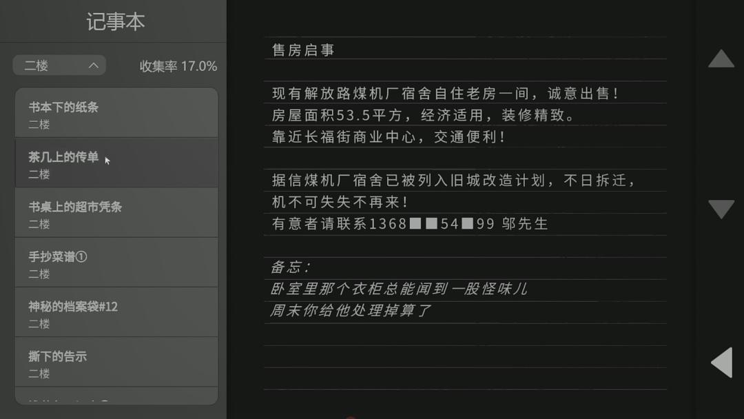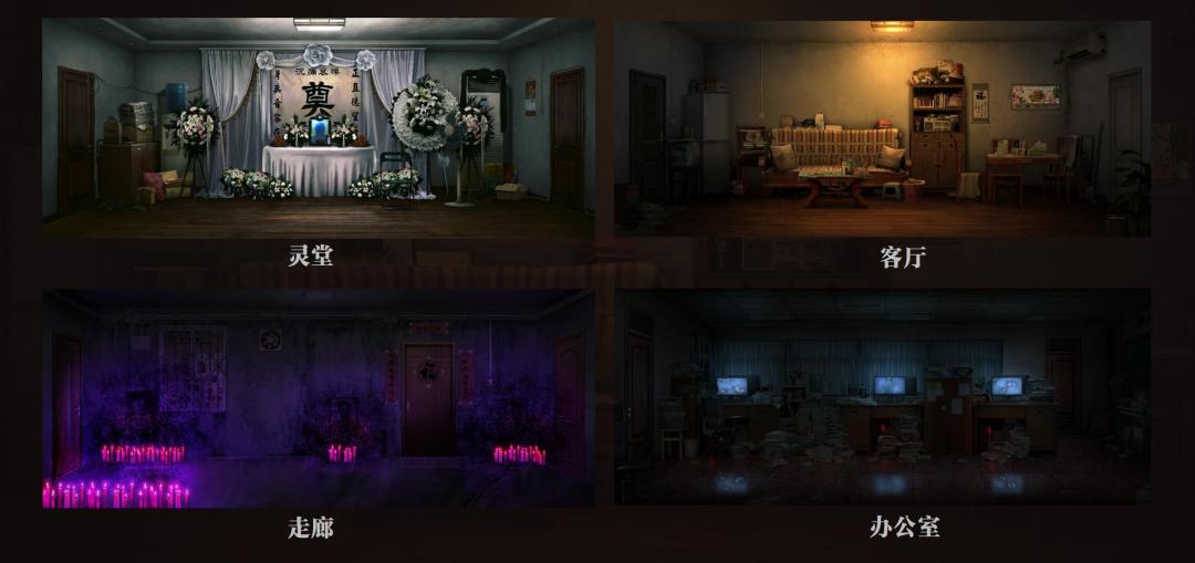 其次,比未知更進一步的,是源於現實而又不同於現實的違和感,這會始終給予玩家不安的感覺,是很多中式恐怖都會用到的氛圍搭建手段。比如一副平平無奇的對聯,貼在樓道里就怪怪的;