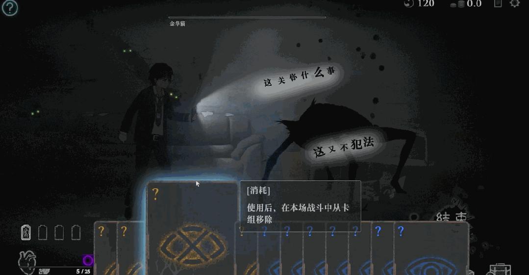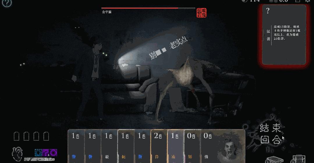 雖然故事模板簡單,但這款遊戲一開始就展現出了獨特氣質:它沒想着在開頭嚇唬玩家,反而先來了段簡單的回合制卡牌戰鬥教學,告訴大家這款遊戲的核心體驗是什麼。