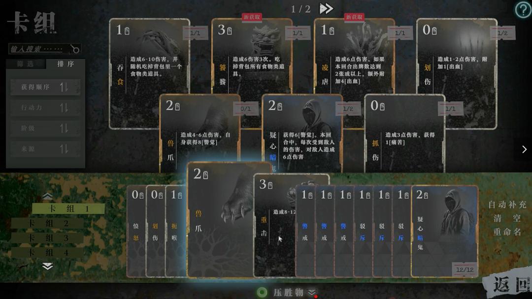 打怪 - 收集卡牌 - 打怪,成了《厭山夜話》核心的玩法和養成循環——沒錯,這款遊戲還有養成元素。怪物每次掉落的新卡牌,都有一定數值或機制上的提升,因此玩家的通關技巧除了構築流派、尋找剋制,也能先蒐集戰鬥物資、清理小怪來獲得強力卡牌。