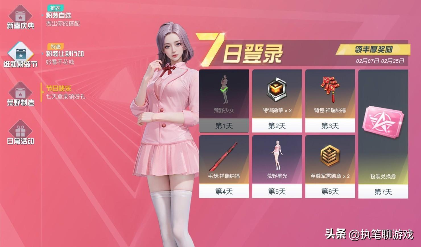 首先是對標“火箭少女101”,既然你需要幸運券概率抽獎,998才能獲得1張入場券,那麼我就來一個“荒野少女101”,即可以用6R直接兌換獲得,也可以通過累籤7天拿到。