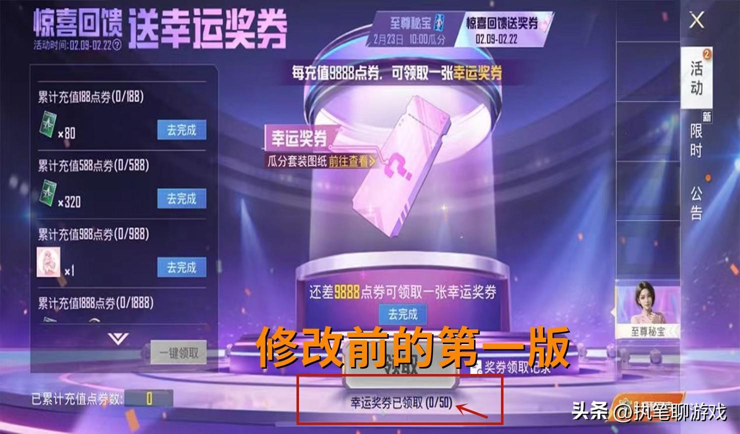 請注意,這裏的“0/50”的意思,想必老玩家們都懂吧?意思是說每一位玩家最多可以領取到50張幸運券。如果按照光子官宣的每9888點券,可以領取一張,那麼就是將近5個W!