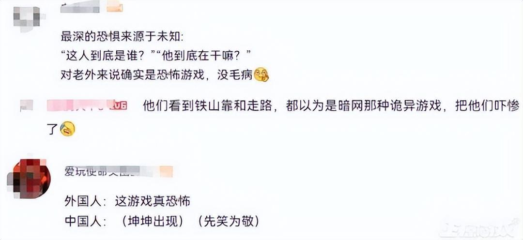 看國外主播玩這款遊戲被嚇面無人色,有國內網友就表示,最深的恐懼來自於未知,不清楚這個人到底是誰?他到底在做什麼?這對老外來說的確是非常恐怖的遊戲。還有網友哭笑不得的說,老外看到鐵山靠和詭異的走路姿態,以爲這是一款源自暗網的詭異遊戲,把他們嚇慘了。有