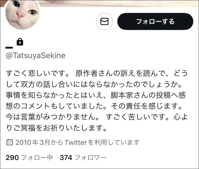 促使我發現這些的,是在蘆原妃名子逝世後,相澤友子在推特上的簡介致歉,在簡介她寫到: