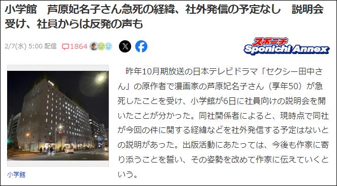 昨天下午小學館召開了內部說明會,表明不打算對外界公佈事件的具體情況,聲稱是因爲蘆原妃名子刪除了社交平臺所有的記錄,所以爲了“尊重逝者的遺志”他們選擇勸全保留,即使被內部員工反對,被外界炎上,也沒有鬆口的跡象。