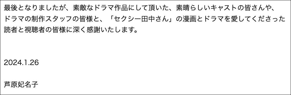 最後的最後,蘆原妃名子致歉: