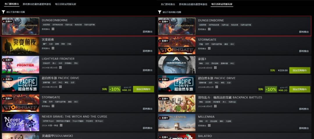 2月初的STEAM新品節剛剛開啓,一款中世紀大逃殺遊戲《Dungeonborne》就從一衆新遊戲中殺出重圍,在新品節的“熱門即將推出”和“每日活躍試用版玩家”雙榜均位列榜首,快速引起了玩家的關注與討論。