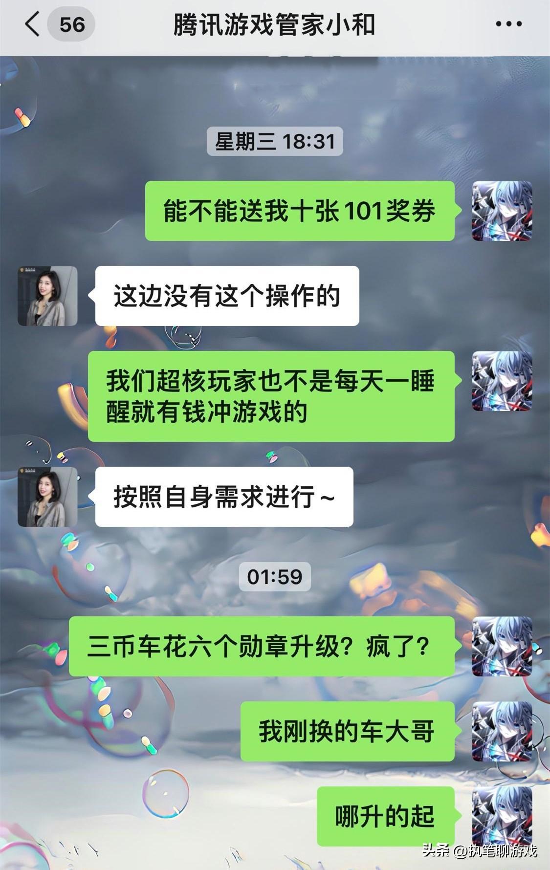 有趣的是,甚至還有玩家特意去詢問管家小和,爲什麼3個幣的車要用6個勳章才能升級?