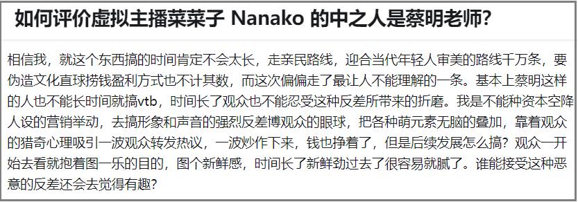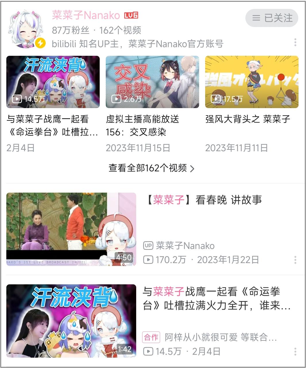 毒舌女王蔡明,春晚OUT;可愛的菜菜子,B站堂堂登臺。2021年起,當潘長江因爲“潘嘎之交”網絡輿論翻車,連帶着老搭檔蔡明也從春晚舞臺消失的時候,很多人只是長舒了一口氣。因爲這位已經62歲,還喜歡扮演毒舌傲嬌人設的老太太,經常被貼上“老不正經”“沒有自知之明”的標籤。許多人呼籲她早日離開春晚舞臺,不要再引起人們的反感了。菜菜子Nanako是一位隸屬於彩虹社旗下的Vtuber,在B站進行直播。在官方給出的設定裏,菜菜子來自外太空,年齡1800歲,屬性是“治癒系小萌神”,總會出現在需要幫助的人身邊,用手中小燈籠散發出的光芒治癒內心困苦的人們。通常情況下,中之人的身份是虛擬主播的禁區,唯獨菜菜子是個例外,我可以放心大膽地開盒。因爲菜菜子就是蔡明,蔡明就是菜菜子。她的聲線過於有辨識度,僞裝效果堪比蝙蝠俠的面具,想猜不到背後的人都難。蔡明=虛擬主播,這消息聽起來有點像洋蔥新聞,但它其實已經是快四年前的事情了。2020年7月,菜菜子在B站開啓了首播,直播方式完全符合專業虛擬主播的要求:二次元皮膚、堅持虛擬人設、與觀衆頻繁互動,唯獨聲音和外形疊加起來,有些違和感。但蔡明老師的專業能力毋庸置疑,巧妙地將這種不協調塑造成了反差萌。平時,她的聲線如普通老年人般稍顯低沉、語速較慢、字正腔圓,但每到“情緒變化”之際,就會尾音上揚、抑揚頓挫,像是大姐姐睜大雙眼的同時用手捂住嘴巴,你又能看出她其實在“逗孩子”,有種小時候看《大風車》《動畫城》的味道。蔡明的確在把觀衆當孩子哄,儘管這些“小孩",可能都是年過30,看了她幾十年春晚的8090後。菜菜子的直播有觀衆提問環節,許多人會傾訴自己的煩惱,詢問如何調整心態。菜菜子都會以“千年白毛老蘿莉”的身份,耐心地回答問題,並向觀衆們反覆強調“你們可以找我傾訴”。蔡明曾在少兒頻道主持過一檔叫《吹牛大王歷險記》的節目老藝術家成爲賽博偶像,顯然是B站整的又一好活,但也沒什麼奇怪的。這幾年迎合年輕人,花式吸引關注度的方法並不鮮見。還記得肯德基的肌肉爺爺、劉殺雞的奧特曼直播嗎?然後都沒有然後了,熱度過去還是該幹啥幹啥。但這纔是今天的重點內容:因爲蔡明老師做vtb,真的堅持到了現在,已經有3年半時間,比蔡徐坤的練習時間還長。如今你在春晚舞臺上看不到蔡明老師,但可以來B站直播間陪菜菜子過年。B站這幾年不缺明星入駐,其中絕大多數只是來了就走,投稿列表只有一個“我來B站了”的視頻。但我還是得說,菜菜子在B站受到喜愛的一個重要原因,是因爲她很敬業,所作所爲符合我們對一位真正的老藝術家的看法。作爲人氣主播,她常年堅持兩週一播,幾乎沒有間斷過。而且菜菜子的一大萌點,在於她始終堅持自己是外星蘿莉、是蔡明老師的朋友的人設。人設原本是vtb重要的組成部分,如今卻很少有人把它當回事。但是在菜菜子身上,明明大家都是衝着本人去的,你卻可以看到vtb在泛濫之前,最開始的樣子。以蔡明老師的身份地位,她其實沒必要對二次元這麼用心,更何況她可能不怎麼靠vtb賺錢。菜菜子經常強調不希望孩子們送禮物,有時候趕着直播沒喫晚飯,她也不在直播中喫任何東西,哪怕嚼顆糖也要對觀衆們道歉。然後,菜菜子值得喜愛的另一大原因,是她對年輕人的包容心。通常在父母輩眼裏,二次元是異世界的怪力亂神,不喊打喊殺已屬難得。但蔡明老師卻對年輕人的喜好沒有偏見,而且自己願意去嘗試。菜菜子的業務範圍除了直播,還包括各種投稿,內容範圍不限於動畫、音樂、遊戲、舞蹈、知識、生活、國創......,幾乎涉及到了二次元的所有領域。害怕在各地方臺春晚看到科目三?沒關係,可以來菜菜子身邊,這裏玩的是年度好梗之強風大背頭。擔心過年回家喫成豬的社畜,可以不急着訂閱《母豬的產後護理》,而是和菜菜子學習她原創的《甩肉舞》。你可能不會真的學着跳,但至少能讓你在牀上躺屍的時候,想要多翻幾次身。說實話,光看這圖誰能想到,在背後穿動捕服跳舞的是個老太太?菜菜子在直播和觀衆互動時,還經常做一些很硬核的挑戰。有人說菜菜子的造型很像《間諜過家家》裏的阿尼亞,她就真的會模仿阿尼亞的口頭禪“wakuwaku”。在之後的高難度繞口令環節,又憑藉自己深厚的臺詞功底輕鬆拿下。你還可以找到菜菜子和很多年輕主播、vtb連麥的視頻切片。菜菜子在春節直播的前一次活動,就是連麥阿梓和戰鷹,一起打鬥地主,以及看去年底的國創新番《命運拳臺》。就連老年人不擅長的遊戲直播,她也靠連連看和你畫我猜找到了突破口,和年輕人打成了一片。我相信這背後是付出過思考和努力的,畢竟電子遊戲這種媒介,並不被她們那一代人廣泛瞭解和接受。第三點,我覺得菜菜子能被B站觀衆喜愛,是因爲她自己就是年輕人。這觀點非常主觀,因爲蔡明的生理年齡已經超過60歲,但各種層面上,我覺得她的心仍然是年輕的,如機械,如鋼鐵,如烈焰,如花朵般跳動。蔡明的戲路極廣。她小學四年級時,北影廠爲籌拍《海霞》面向全國挑選小演員,導演一眼相中了蔡明,因爲她聰明活潑而且長得像當年的大明星謝芳。蔡明在她出道的前幾部戲中,貢獻的名場面幾乎都是哭戲。所以,蔡明其實是靠悲情角色出道的。憑藉美女落淚的鏡頭,蔡明早年的形象是很女神的。我們爸媽時代的文娛圈有個被人津津樂道的八卦,說