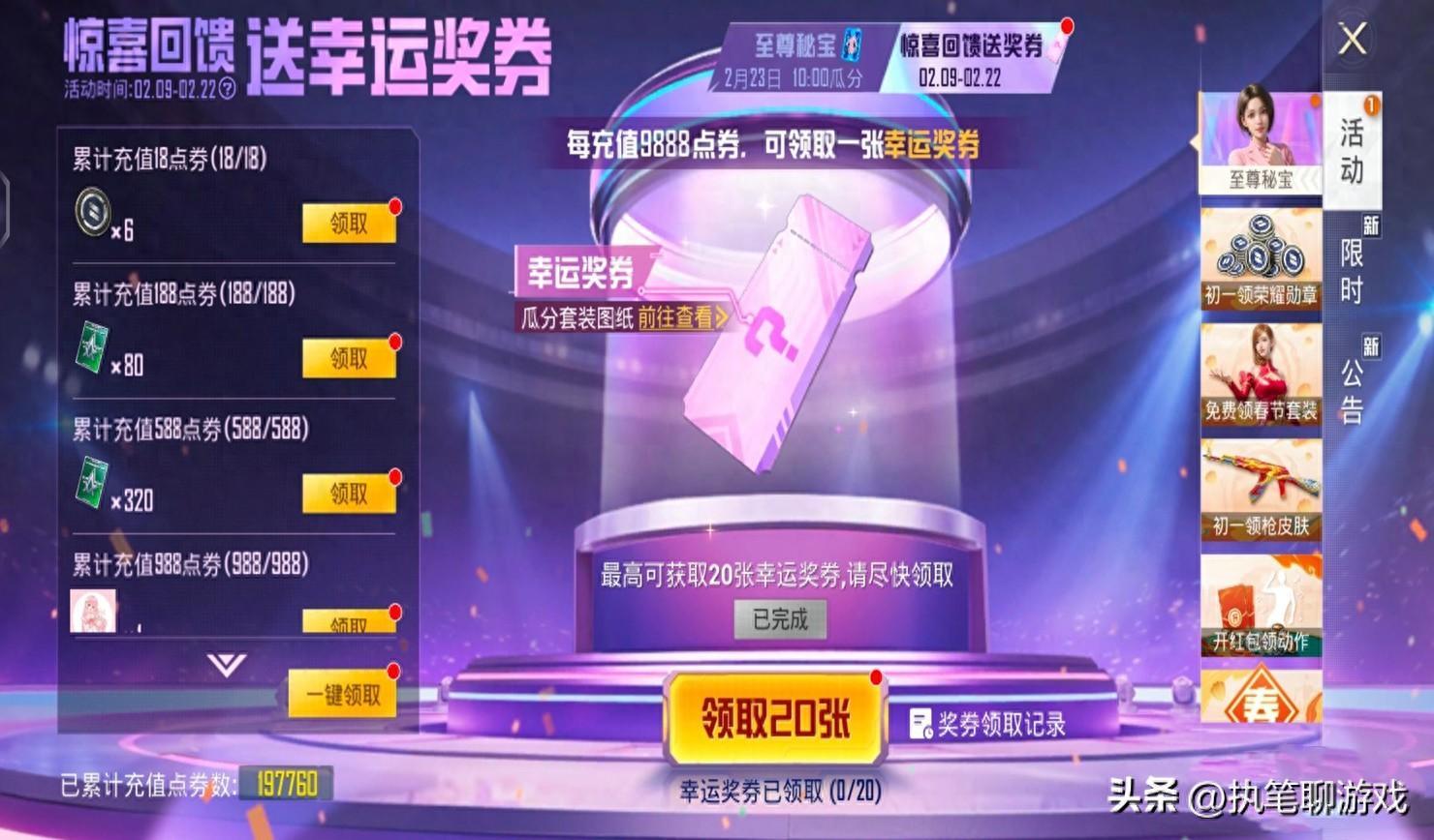 根據以往的累充獎勵任務出現的情況來看,天哥預估5張以上的幸運券基本必出,5張以內則可能要“看臉”了!