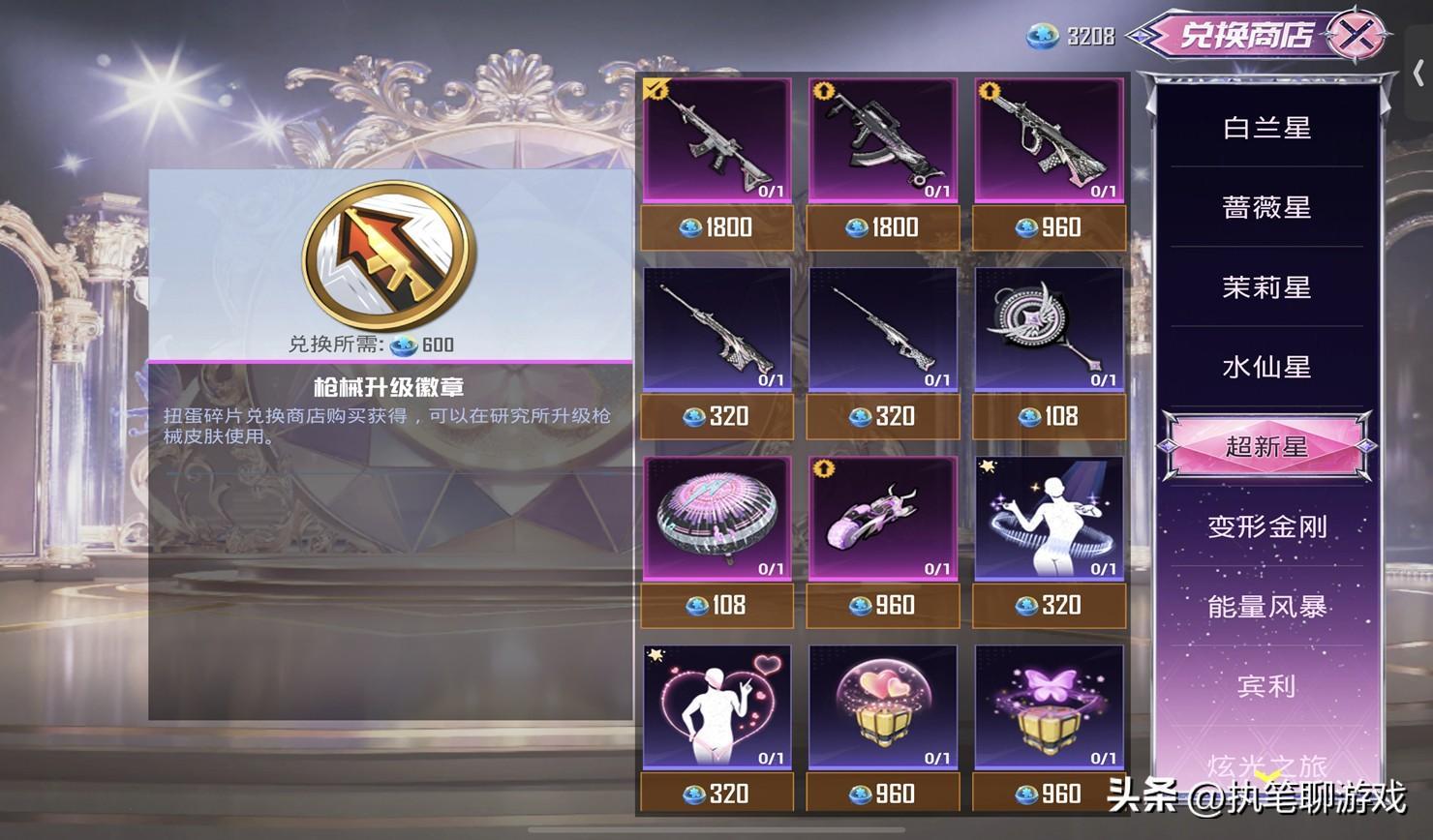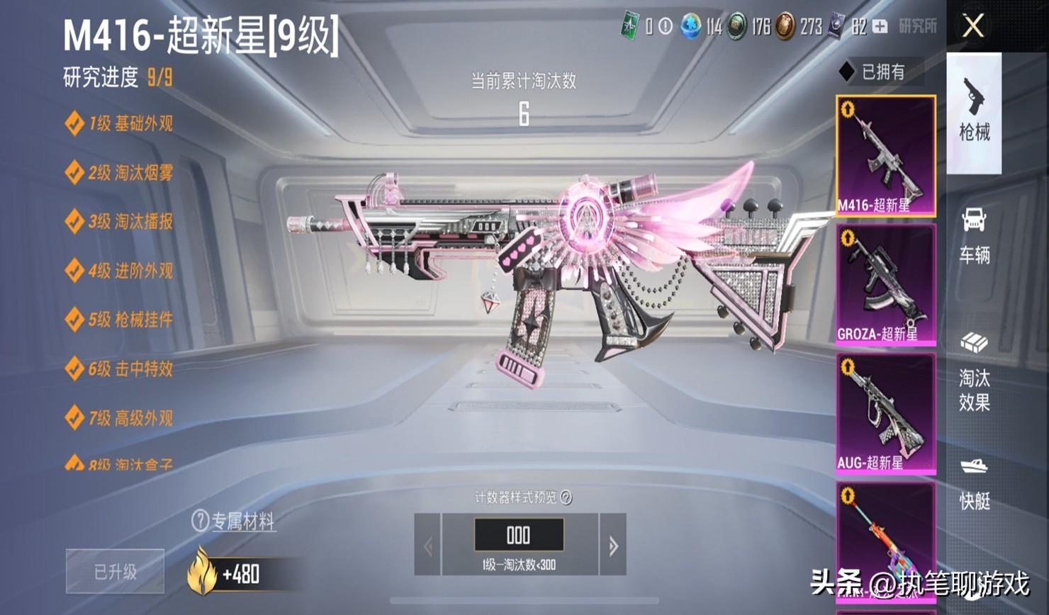 然而這一次的“超新星”到來之後,光子爲M416、Groza這2個9級槍進行了調整,新增“升級徽章”,而且數量不菲,進階外觀需要3個、高階外觀需要6個。