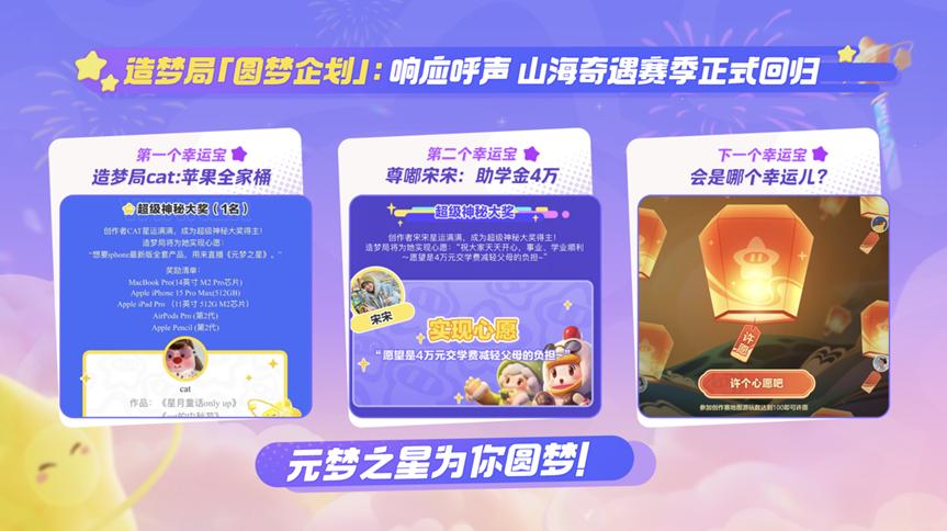 此外,《元夢之星》開服公佈的10億造夢計劃,已經選出了17位千萬星合約大獎賽入場券得主。這些幸運的創作者也在新春來臨之前,送上了他們的祝福: