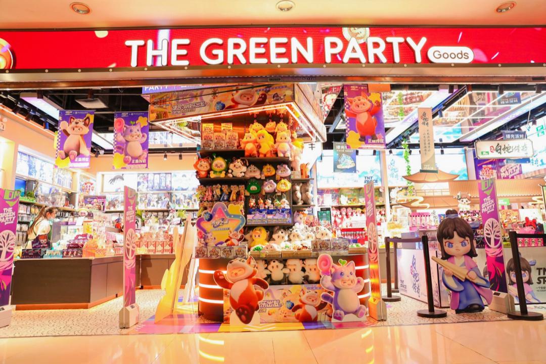 好了,逛了一圈,大包小包地滿載而歸,路過The Green Party、伶俐時,往裏面一瞅:密密麻麻地就擺着《元夢之星》的可愛周邊……