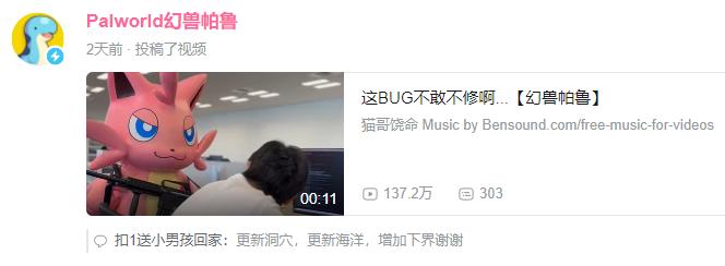 在春節期間,Pocketpair發佈了一支搗蛋貓拿着武器,監督程序員改BUG的惡搞視頻。很快這個畫面就被網友P上了應景的復工主題。