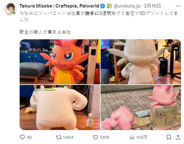 Pocketpair的社長還在X(推特),分享了搗蛋貓模型製作的幕後。