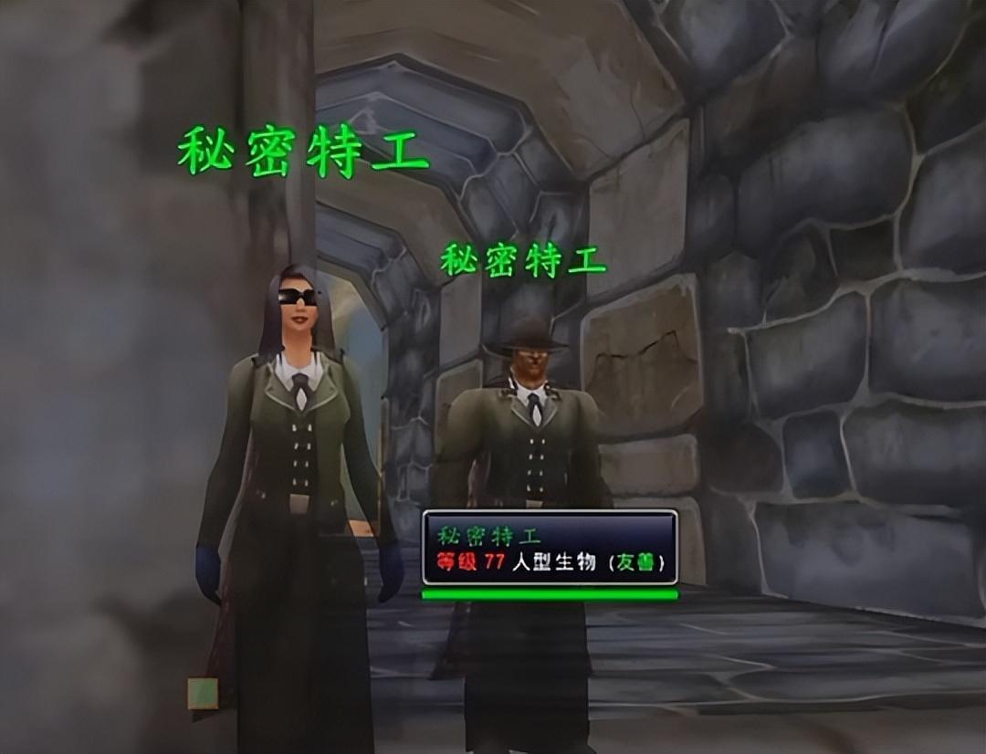 經過跟經典舊世版本的比對,我們可以確認這兩位特工是Plus服特有的存在,而他們一身黑衣人墨鏡裝束似乎與40級的新團本諾莫瑞根小玩具“墨鏡”,以及狼人經典的風衣裝扮有關係。