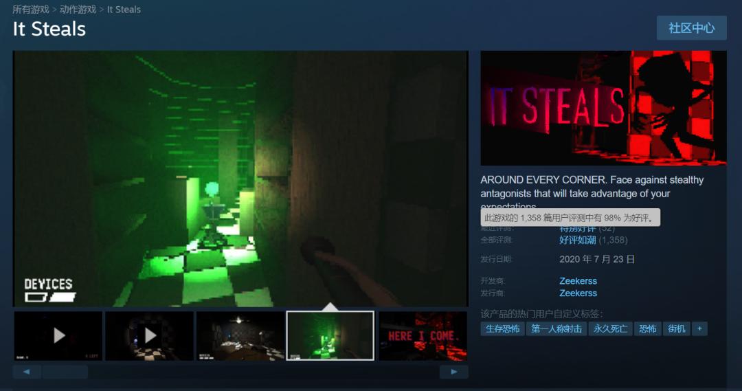 從“過關恐怖”品類的《It Steals》開始,這些遊戲標誌着Zeekerss逐漸進入了創作“成熟期”。比如遊戲的美術風格更多地聚焦於低像素風格,而憑藉獨特的風格,Zeekerss的作品開始吸引內容創作者和主播們的注意,玩家對其遊戲的關注度也在迅速增長。