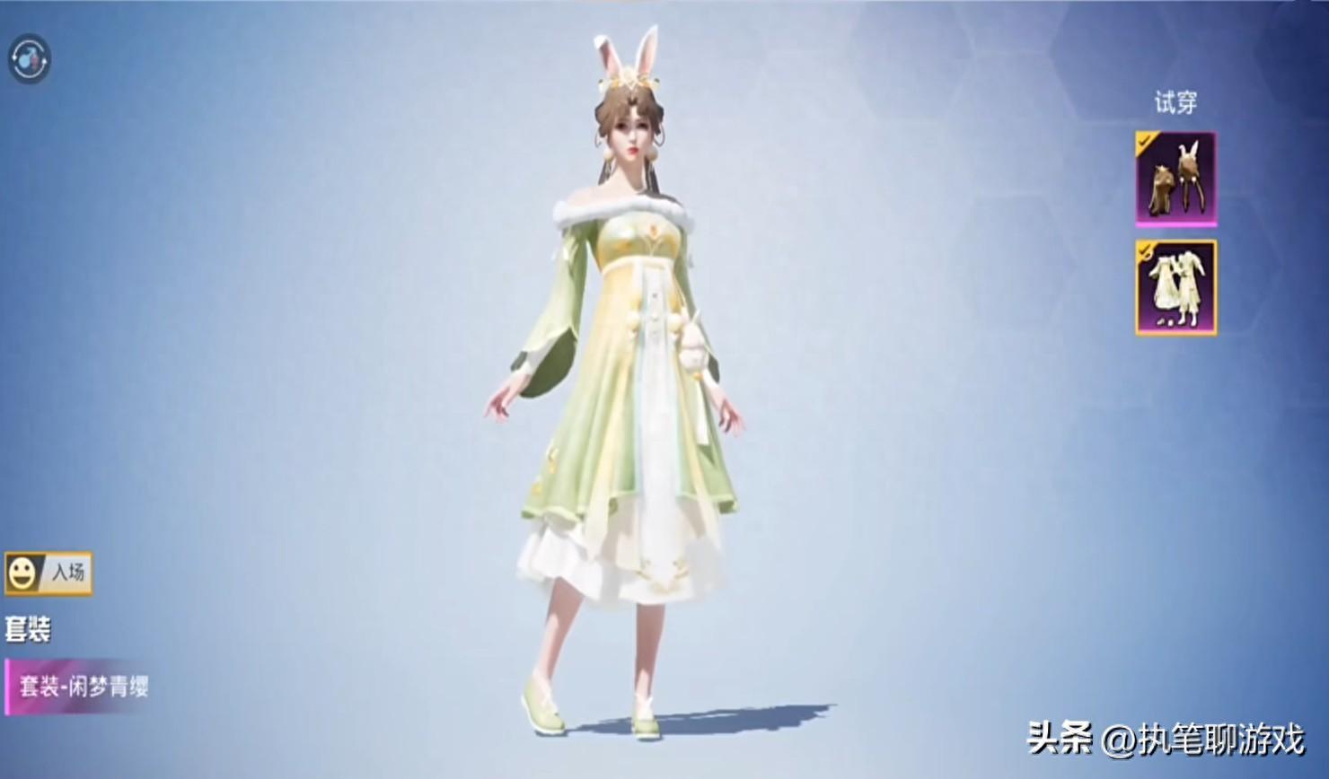 首先是C位套裝,被光子命名爲“閒夢青纓”,雖然是數量較少一些的古裝風格,但依然還是熟悉的小裙子。如果說唯一的亮點,天哥覺得可能就是兔耳朵了,畢竟這類單品可以用來DIY,適合很多不同風格的搭配。