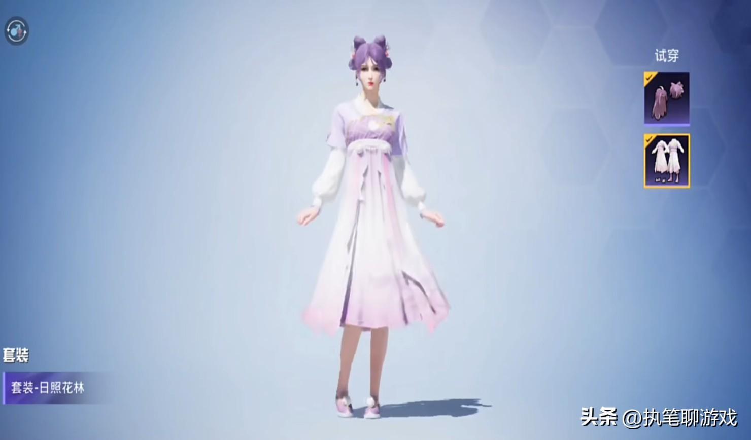 接下來登場的依然是紫色等級套裝,被光子命名爲“日照花林”,紫色的小揪揪看着格外眼熟,是不是像極了古裝劇裏的丫鬟呢?