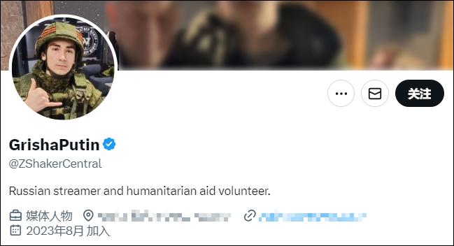 他雖然身處俄羅斯,但他並不是俄羅斯軍人,他給自己的備註是“Russian streamer and humanitarian aid volunteer(俄羅斯主播和人道主義志願者)”