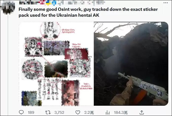 在俄烏戰場戰火最旺盛的那段時間,總能看到模仿戰場貼紙而出現的“戰場上的二次元”之類題材的視頻,數十個片段可能僅僅有一兩個是戰場的碎片,更多則是歐美論壇 Reddit ,或者推特上分享出來的軍宅照片。