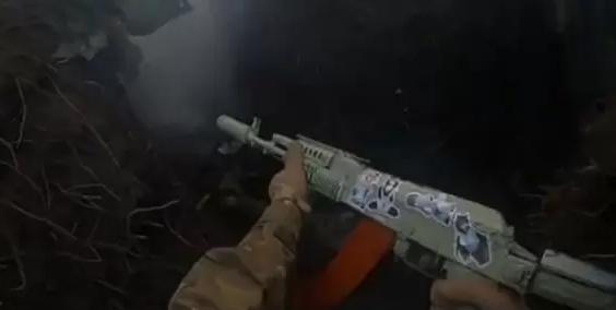 當時一支貼滿貼紙的AK47,通過運動相機所呈現的模糊光影,在推特上不脛而走。