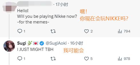 當我寫下這篇文章時,前面提到的自稱自己是《Nikke》體模的虛擬歌手Sugi已經刪掉了那段推文,當作什麼都沒發生。