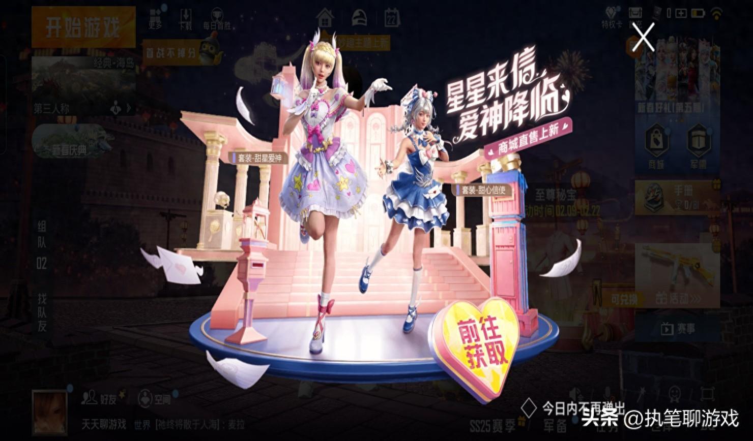 但是在光子的官宣裏,無論是和平營地的精修海報,還是遊戲內的提示海報,我們只能看到“甜心愛神”僅有2個套裝。