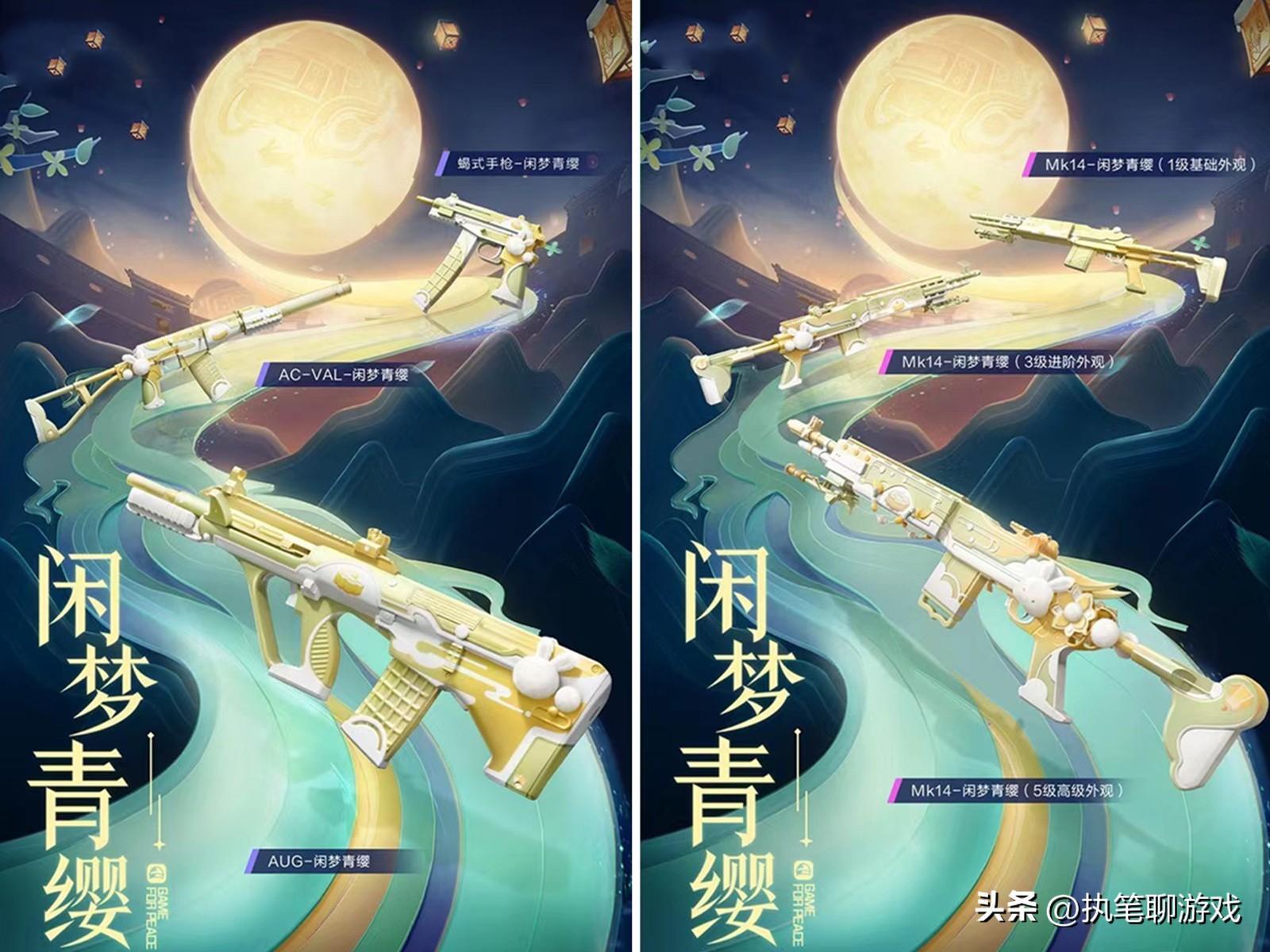 作爲接替“恐龍妹”的新軍需,“春花月夜”在皮膚種類方面自然是一應俱全,其中的槍皮分別是MK14升級槍、蠍式手槍、AC-VAL、AUG。