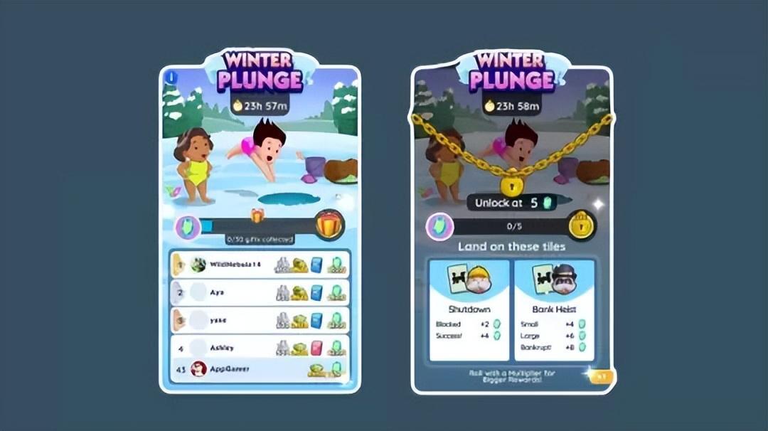 12月遊戲推出了‘Santa’s Sprint’和‘Mistletoe Tournament’等精彩活動,使遊戲單日流水達到1040萬美元,創下自發布以來的最高收入紀錄。1月《MONOPOLY GO!》繼續加大活動力度,‘Winter Plunge Tournament’和‘Winter Express’活動的相續推出,1月19日再次刷新了單日收入紀錄,也使1月成爲上市以來收入最高的月份。